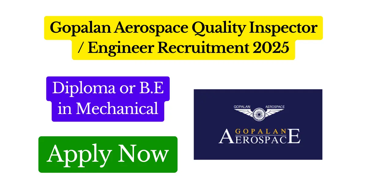 Gopalan Aerospace has shared a new opening for the role of Quality Inspector / Engineer at their Hoskote facility in Bangalore. The company works in the aerospace and defence sector, so the work mostly involves precision parts and strict quality standards. If you already have experience in sheet metal or machined components, this is a good opportunity to move into a more serious engineering environment.